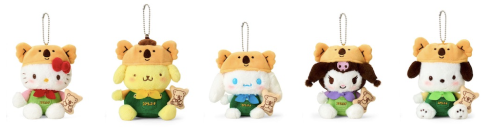 The design of the Sanrio characters wearing hats inspired by Koala’s March is an original design unique to this collaboration, with March and the Sanrio characters each posing in the same pose.