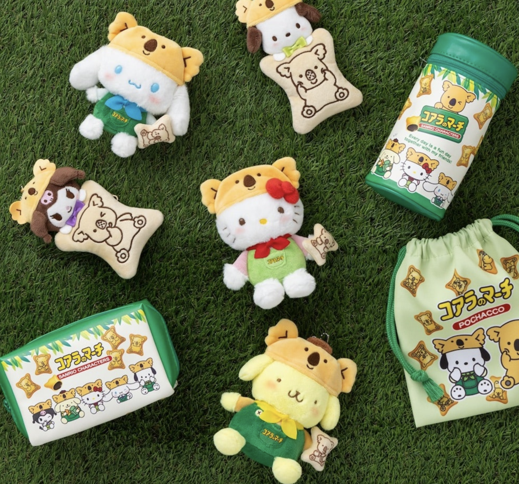 The design of the Sanrio characters wearing hats inspired by Koala’s March is an original design unique to this collaboration, with March and the Sanrio characters each posing in the same pose.